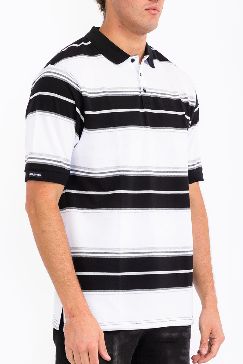 Chicano Latino classic oversize long striped polo pique shirt