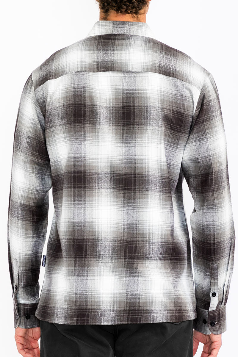 Button Up Closure with Single Chest Pocket. Company Logo along the right sleeve hem.