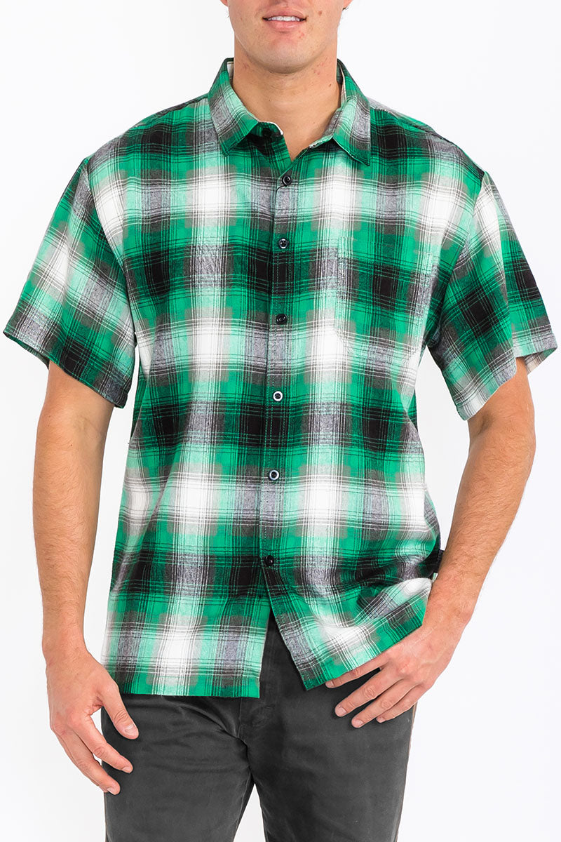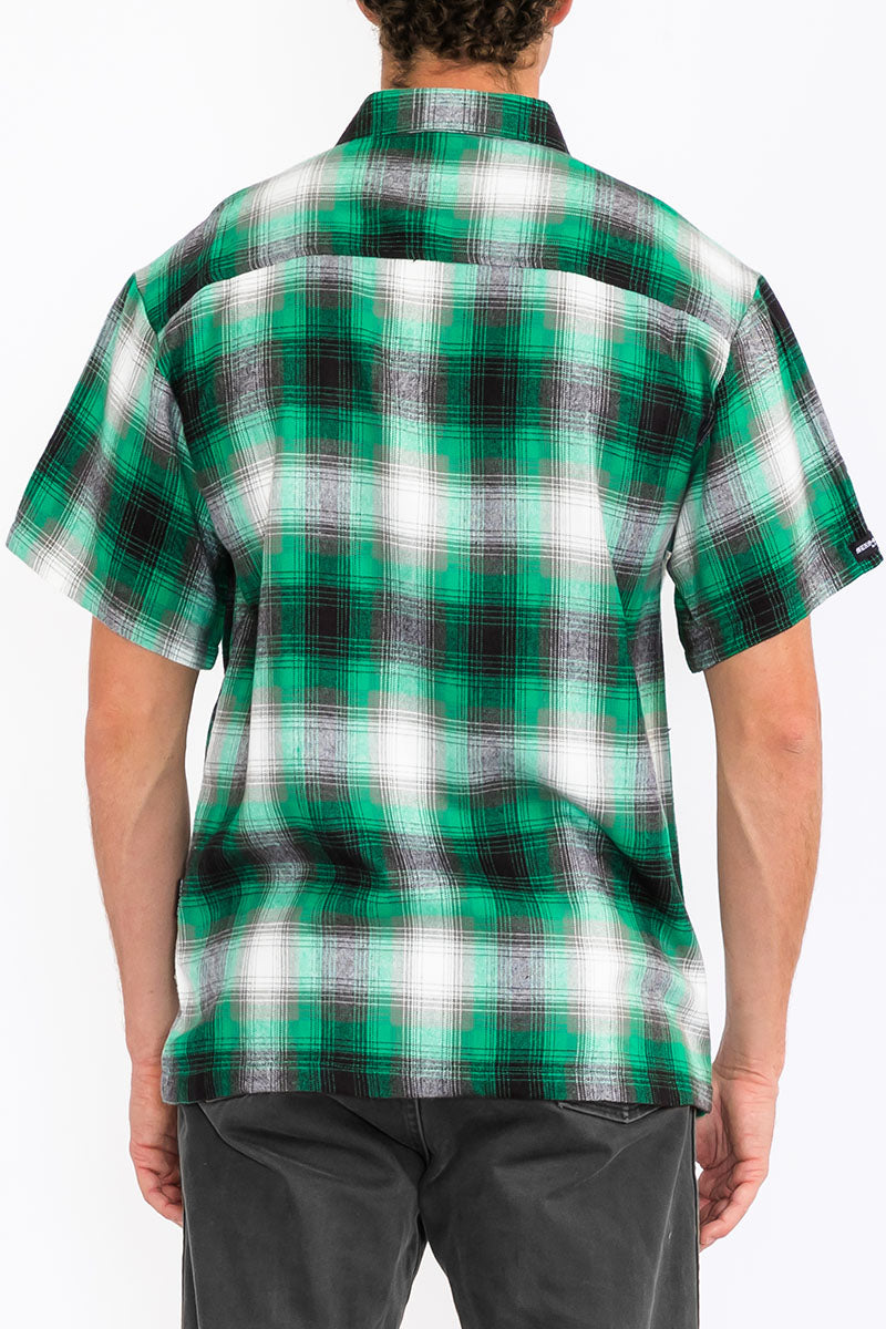 Button Up Closure with Single Chest Pocket. Company Logo along the right sleeve hem.
