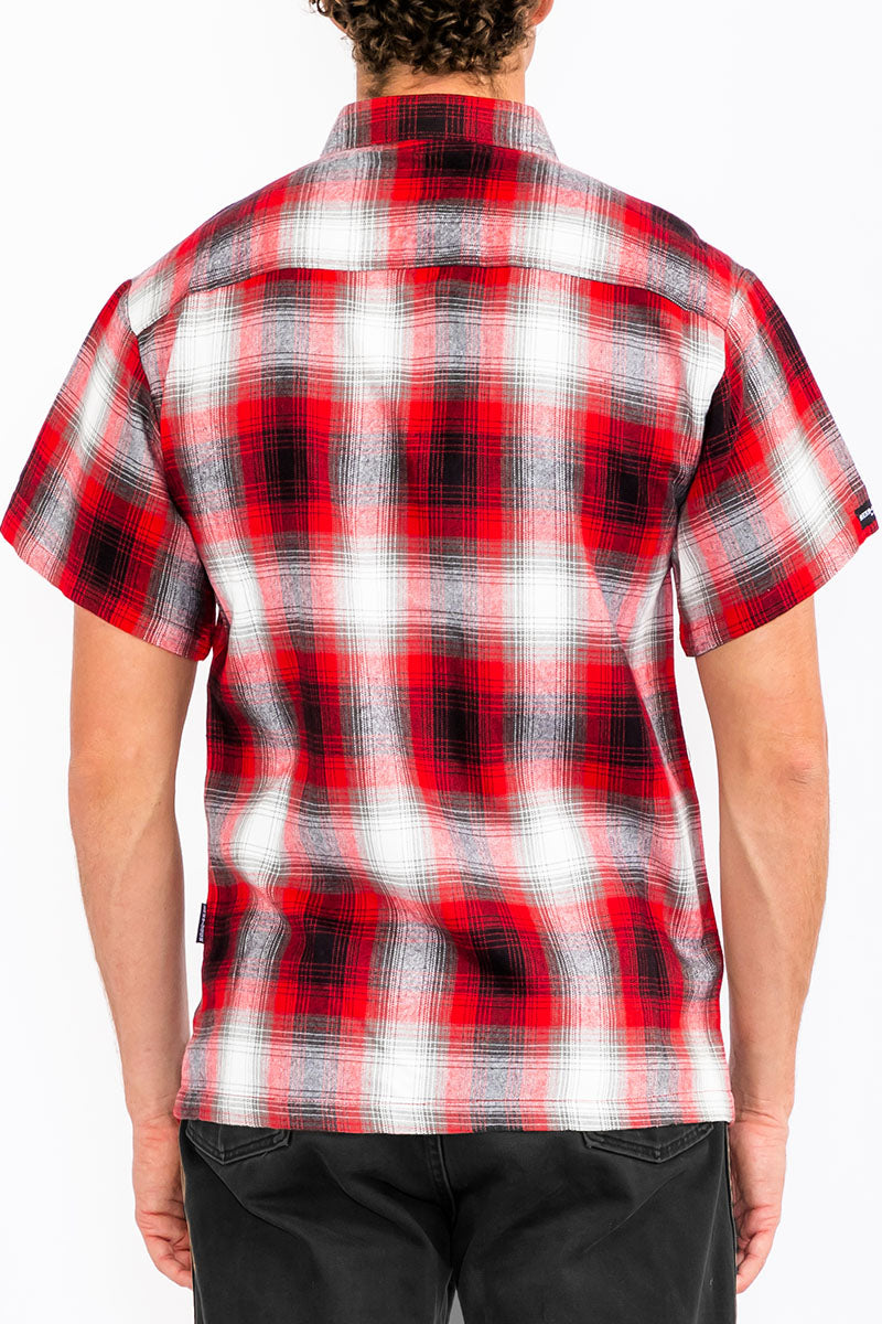 Button Up Closure with Single Chest Pocket. Company Logo along the right sleeve hem.